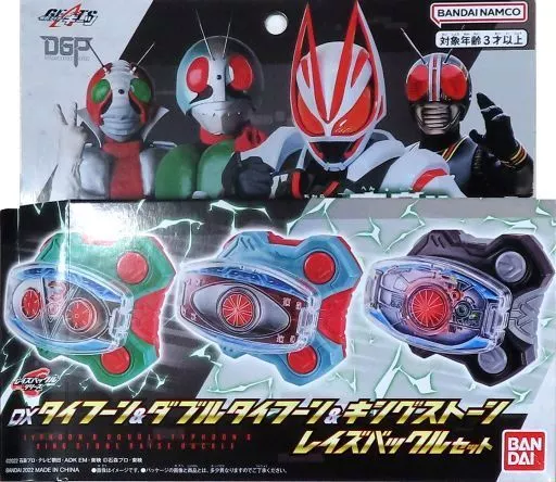 "DX Typhoon & Double Typhoon & Kingstone Raise Buckle Set" vendido en Kamen Rider Store Tokyo y tiendas emergentes.
