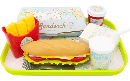 Bandeja, sándwich, patata, tenedor, salsa, caja de sándwich, zumo, gelatina