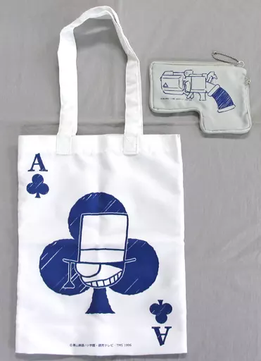 Esta es una réplica de una bolsa ecológica de la que sale una carta de una pistola de naipes.