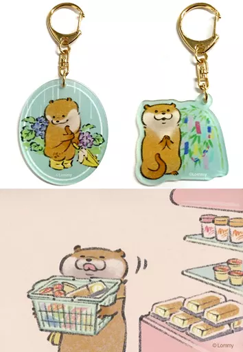 Este es un juego de 2 llaveros acrílicos (con un patrón de tarjeta postal A) que ganó el premio E-3 de la colección Rakuten "Bonita nutria mentirosa".