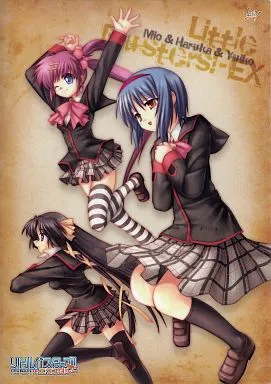 Este es un cartel claro de [Nishimatsu 美魚], [Saegusa 葉留佳] y [Raigaya 唯湖] de la videojuego de aventura romántica "Little Busters!! Ecstasy".