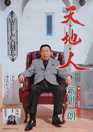 Este es un cartel promocional para el sencillo "Cielo, Tierra y Gente" de Jirō Shinkawa.