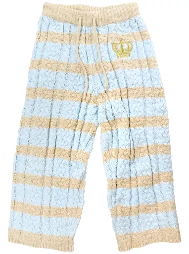 Este es un par de pantalones rayados de punto de cable de ropa de habitación "ME TIME" de "SHINING STORE 2020".