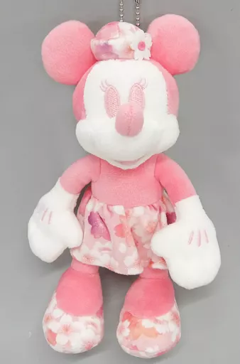 Explicación del producto : Esta es una insignia de Peluche rosa de Minnie vestida con un patrón de flores de cerezo.