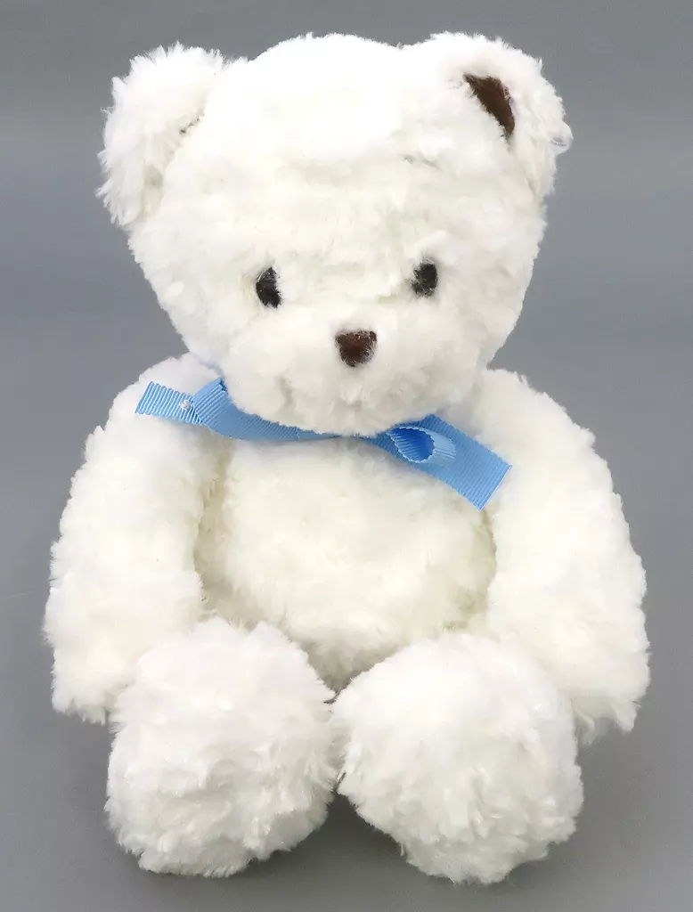 Este es el Peluche de Fami-chan, que se caracteriza por un cuerpo blanco blanco con una cinta azul claro.