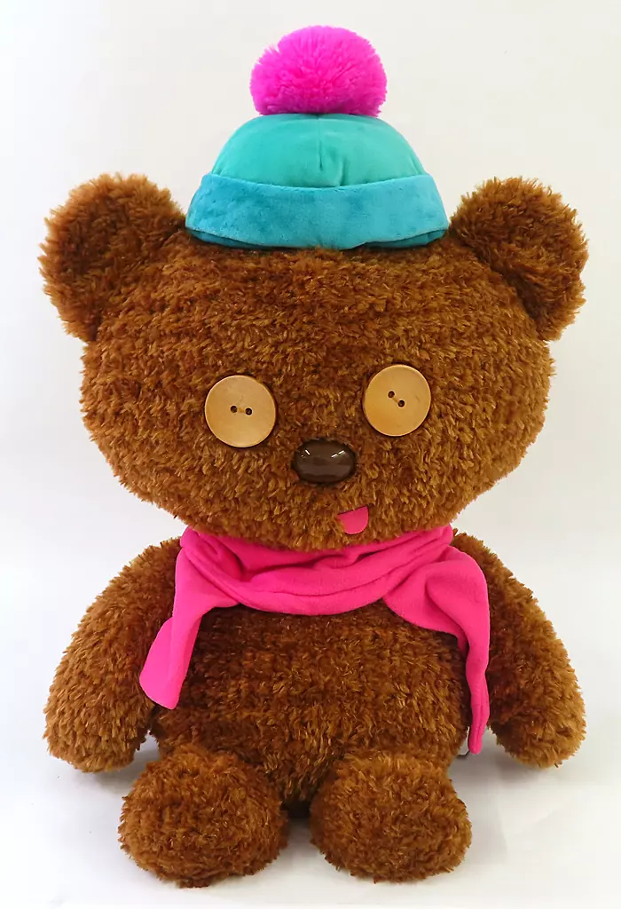 Este es el Peluche de Tim usando una bufanda rosa.