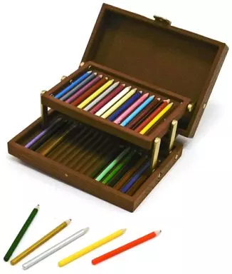 Un estuche de lápices de dos lados y un bolígrafo de tres colores que alardeaba de mis amigos. Pinturas y formón que usé durante mi dibujo.