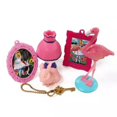Flamingo, vestido (2 partes), pintura (2 partes) x 2, conejo, colgante.