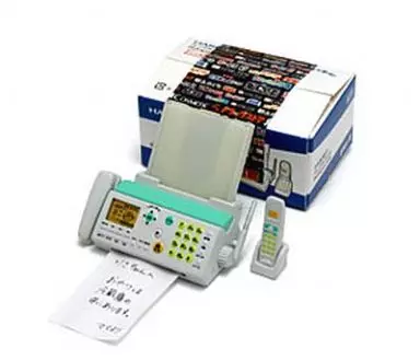 Caja de fax, fax, teléfono móvil y papel de fax