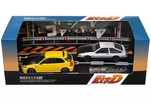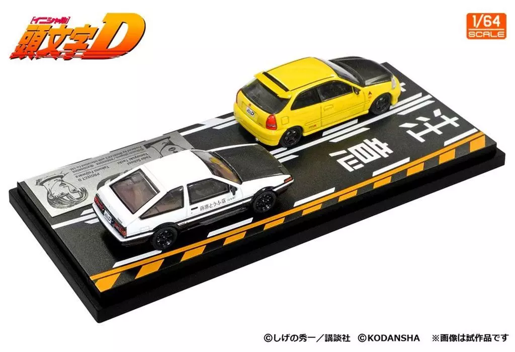 Explicación del producto : 1/64 Modellers Initial D Dycast Model 12 es un conjunto de dos coches : Tatechiko Toido Shokai Civic (EK9) y Character Takumi Treno (AE86).