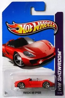 PORSCHE 918 SPYDER (rojo) está alineado con "Hot Wheels HW SHOWROOM".
