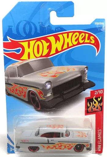 ■「 Hot Wheels HW FLAMES incluye 1/64 55 chevy (patrón gris x rojo).