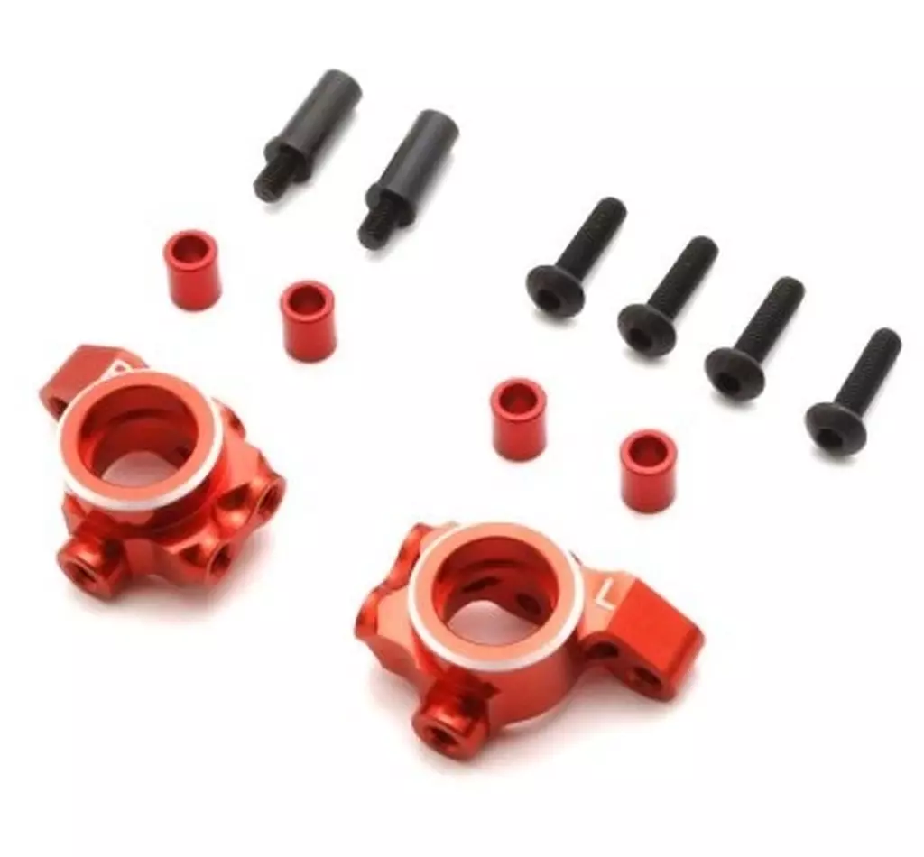 Los nudillos que dirigen el eje de rueda delantero están hechos de resina integral estándar. El corte de aluminio mejora en gran medida la rigidez y permite un funcionamiento preciso de la dirección. El aumento del peso también ayuda a aumentar el agarre de los neumáticos delanteros.