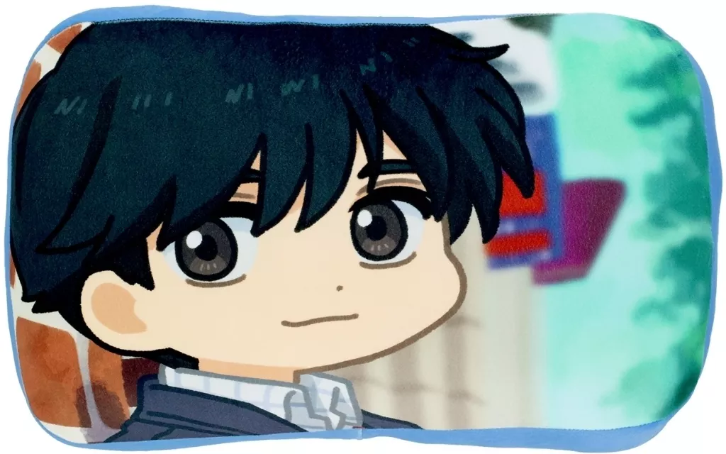 La ilustración de marco suelto de la escena impresionante de Eiji Okumura y el logotipo de la obra se han convertido en un cojín.