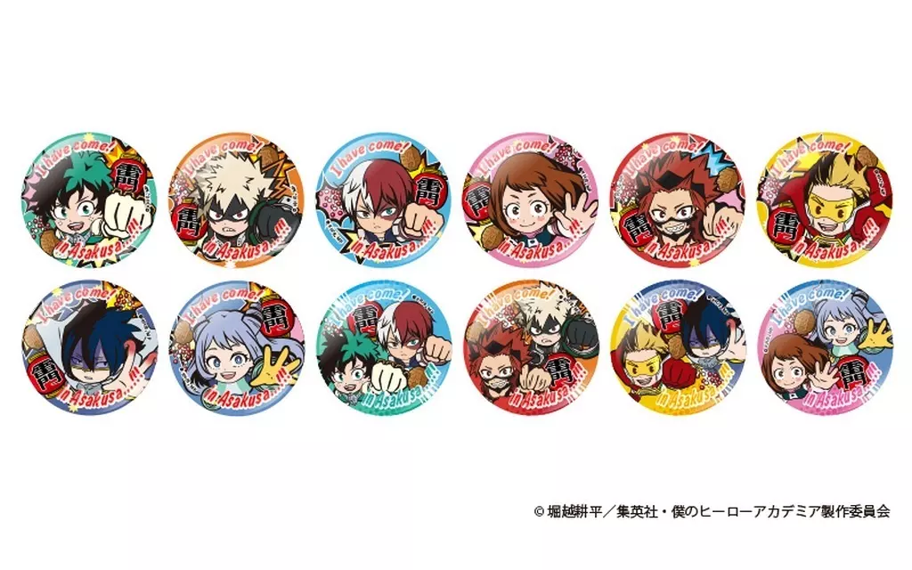 Explicación del artículo : Este artículo es un conjunto de 12 tipos de "My Hero Academia Asakusa Senso Saihen Kaminarimon metal badge".