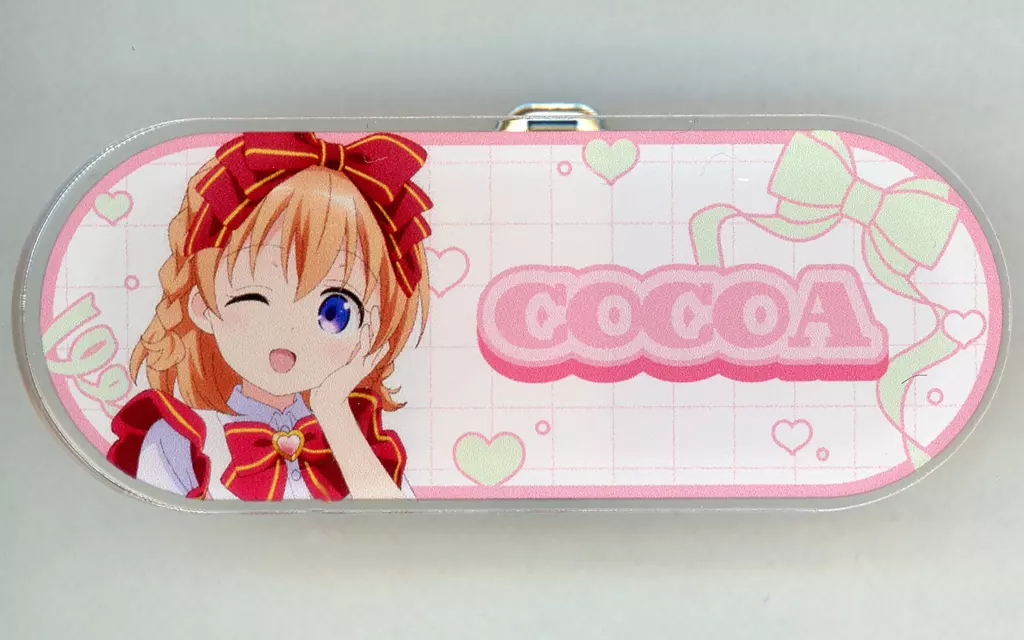 "Is the Order a Rabbit? BLOOM animate Fair" Esta es una placa de nombre acrílico comercial.