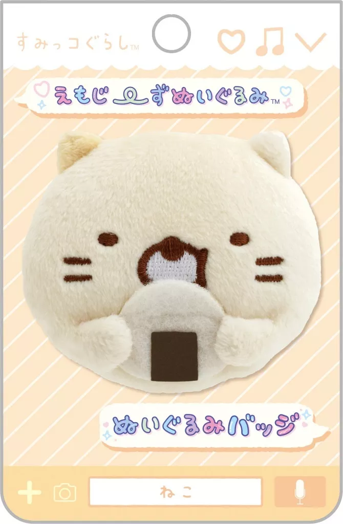Nombre comercial en japonés: バッジ・ビンズ ねこ えもじ~ずぬいぐるみ ぬいぐるみバッジ 「すみっコぐらし」