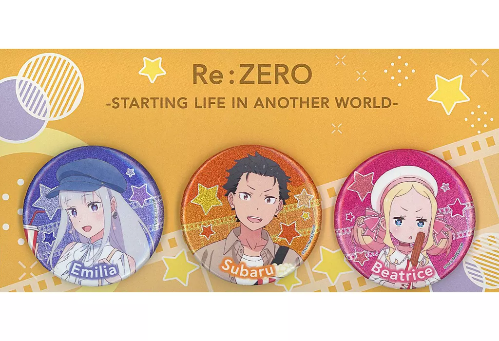 Descripción del producto : "Re:Zero kara Hajimeru Isekai Seikatsu 3 rd Season Episodio 1 : Pre-Showing a Theater type Malicious Theater" Es el "metal badge Set" de los productos teatrales.