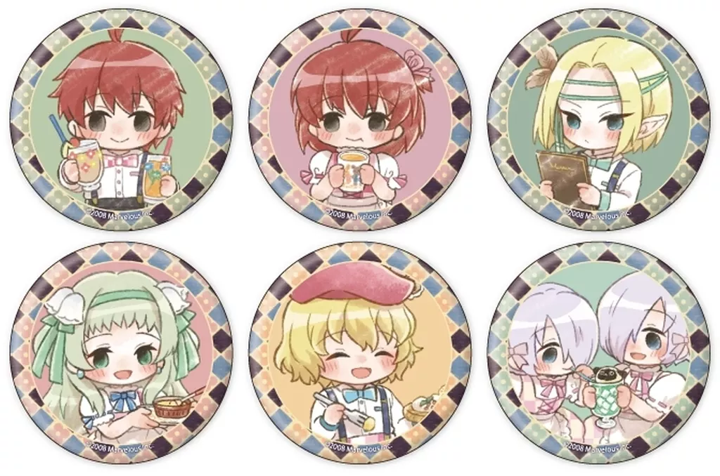 Explicación del artículo : Este artículo es un conjunto de 6 tipos de "metal badge Rune Factory 2 03. Retro Kissa ver. Retro Art Illustrated".
