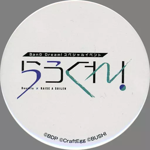 Nombre comercial en japonés: バッジ・ピンズ ロゴ(らうくれ!ver.) 「BanG Dream! スペシャルイベント 「らうくれ!」&「あすはも!」 トレーディング缶バッジ」