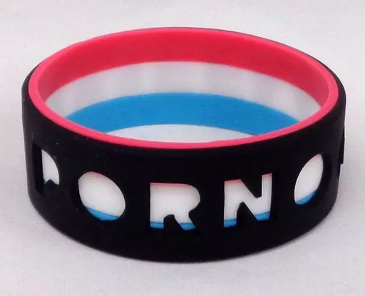 Banda elástica con la especificación de que una banda elástica delgada se solapa con una banda elástica gruesa en la que se recortan las letras de 『 PORNOGRAFFITTI 』.