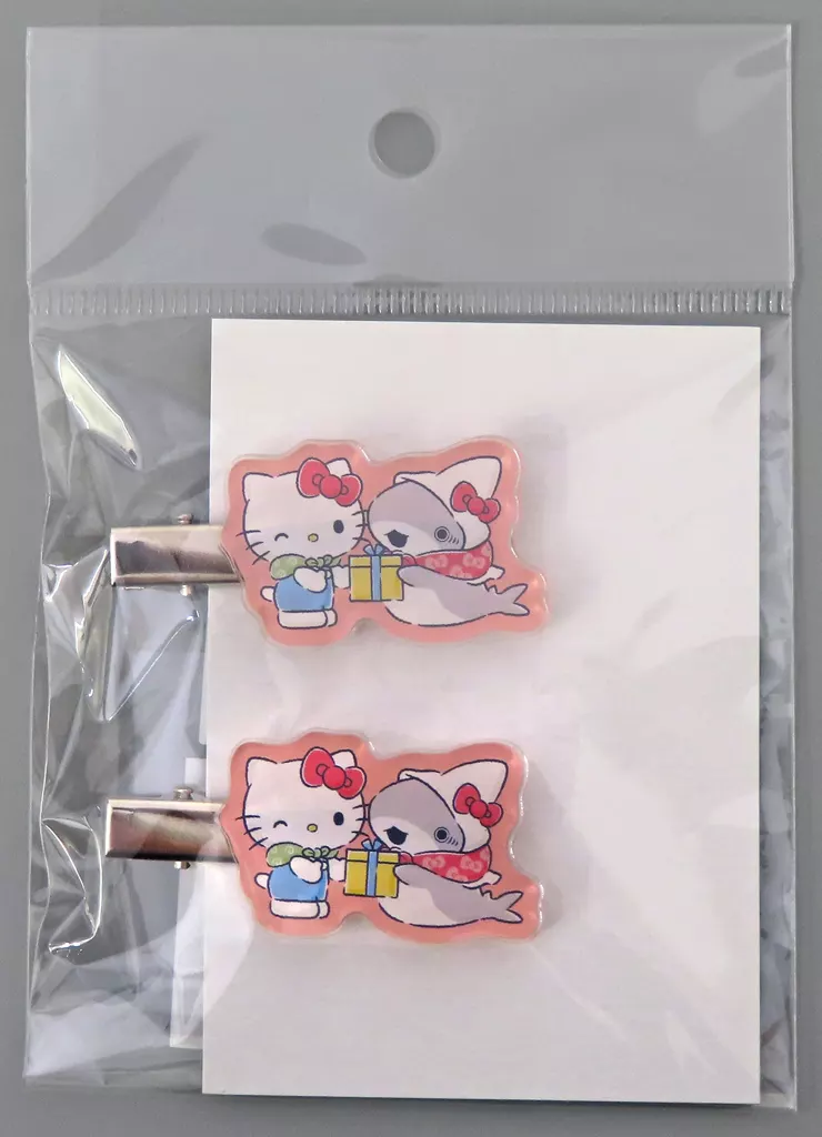 Este es un juego de 2 sujetadores de pelo acrílico de 『 Dekakeko Shark × Sanrio Character Doters 』.