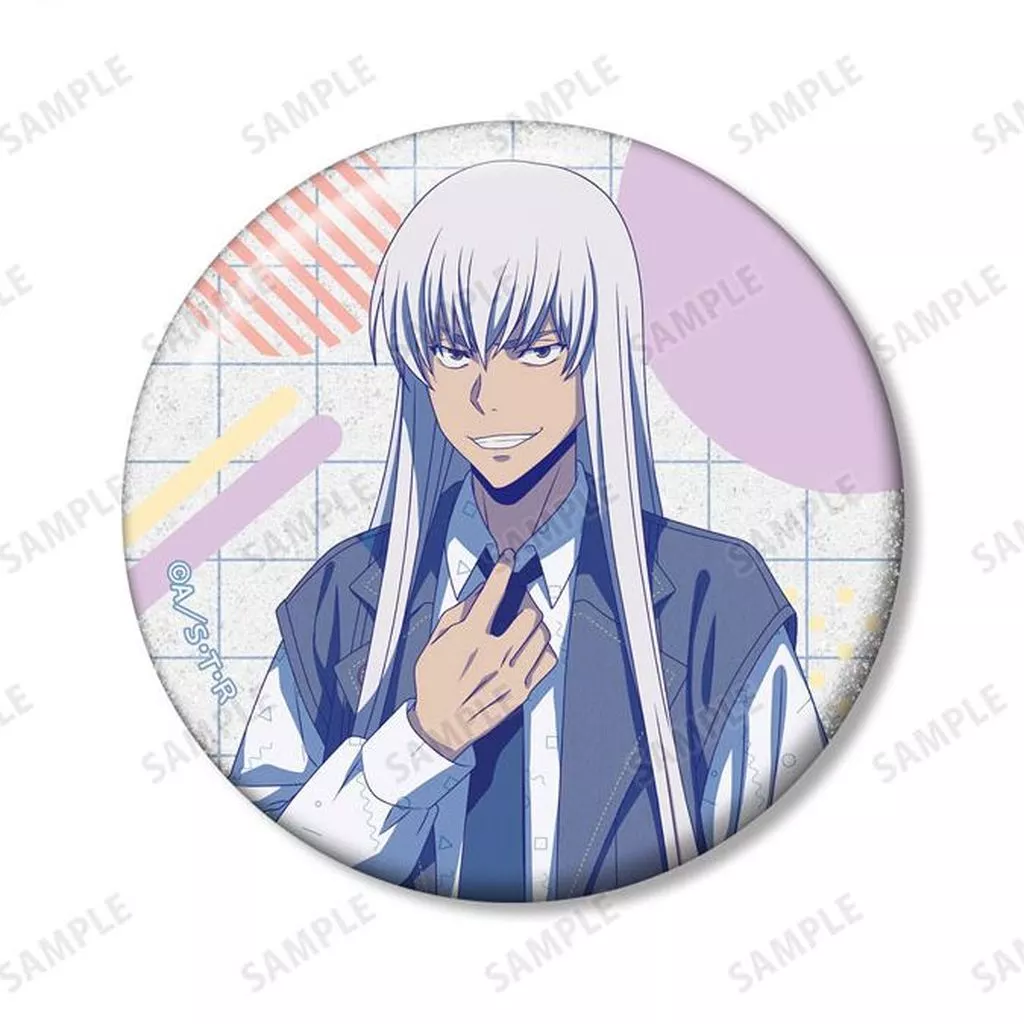 Explicación del producto : "Tutor, Hitman REBORN! Dibujo retro pop ver. Trading Glitter metal badge" que fue prevendido en Jump Festa 2025.