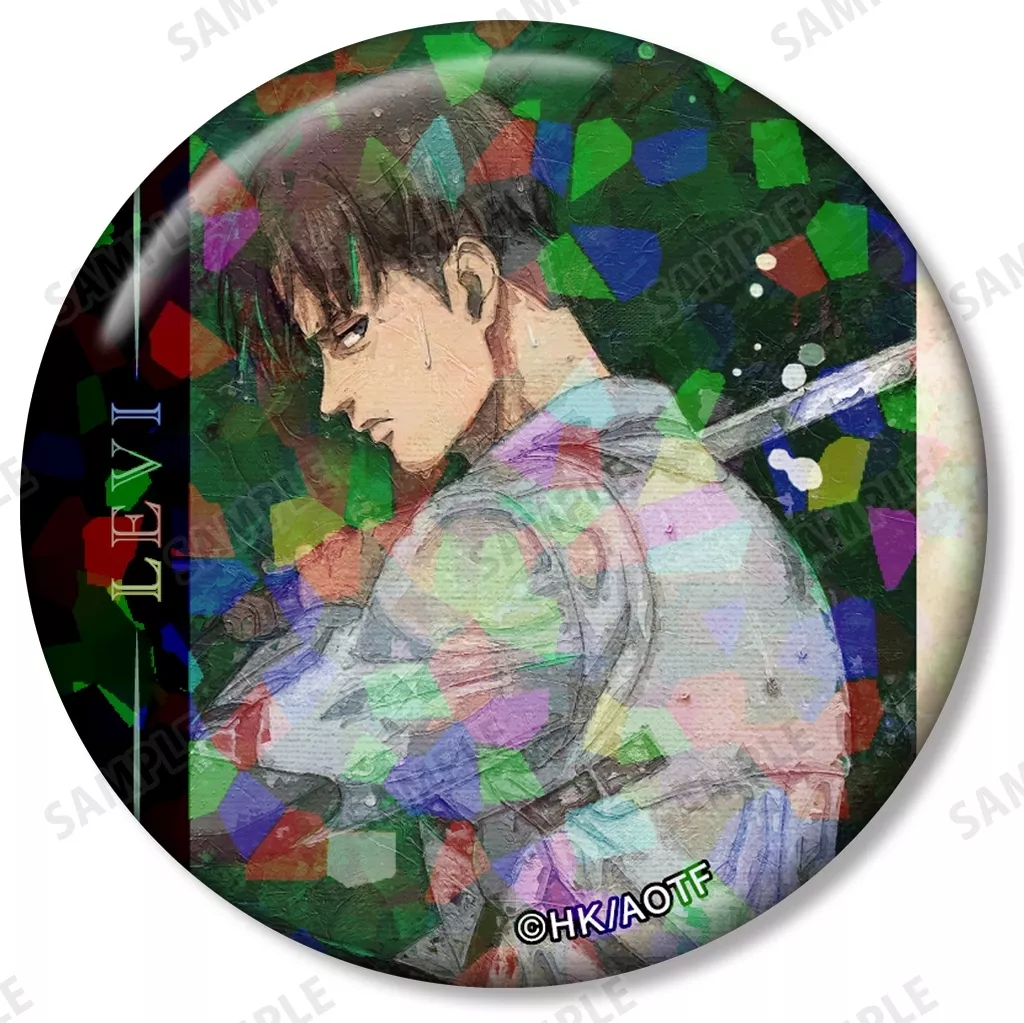 Las ilustraciones dibujadas por Eren, Jean, Zoë Hange y el Sargento Rivai se muestran de forma atractiva con un nuevo toque, y se ha convertido en un metal badge con procesamiento de holograma.