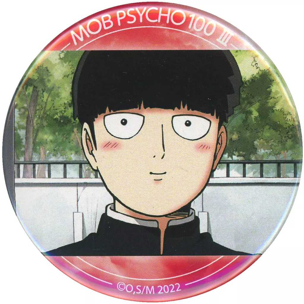 Shigeo Kageyama (fondo : madera) / metal badge Scene photograph "Mob Psycho 100 III metal badge Omi Demarquía Bako" buena suerte ligera