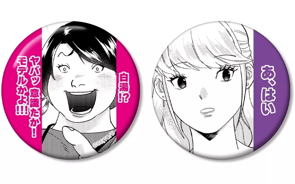 La ilustración del marco original de Nami Aminohama y Asaginu Honda se ha convertido en un juego de 2 piezas de metal badge.