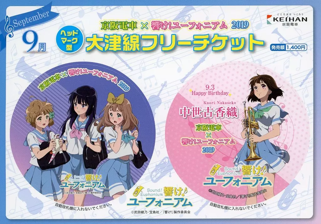 Set (septiembre) : Headmark Type Otsu Line Free Ticket "tren eléctrico de Keihan x Hibike! Euphonium 2 019"