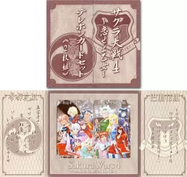 Nombre comercial en japonés: ゲーム・PC系テレホンカード (2枚組) エリカ・フォンティーヌ:グリシーヌ・ブルーメール:コクリコ:計5名/真宮寺さくら:神崎すみれ:マリア・タチバナ:計8名「サクラ大戦4 -恋せよ乙女- [台紙付き]」