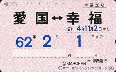 Esta es una tarjeta telefónica que imita el "Past entre Patriotismo y Felicidad", que se vende en una tienda cerca de las ruinas de la estación patriótica.