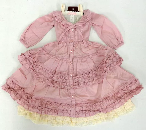 La falda que se extiende suavemente tiene muchos adornos y pliegues de pin. Un vestido lleno de los deseos de una chica con una silueta elegante.