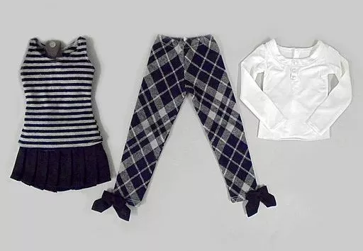 Long T-shirt (White), Tank Top (Striping), Skirt (Black), Leggings (Argyle Pattern)
