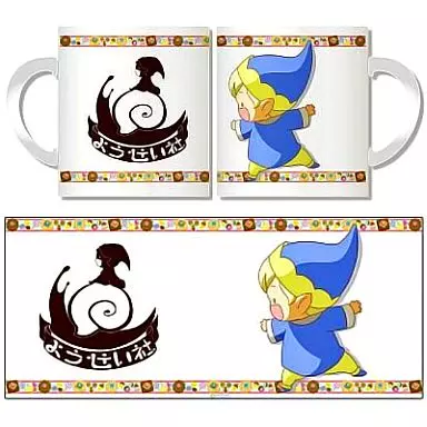 Una gran taza impresa con el logotipo de Yosei-sha y un hada que se pega en la taza.