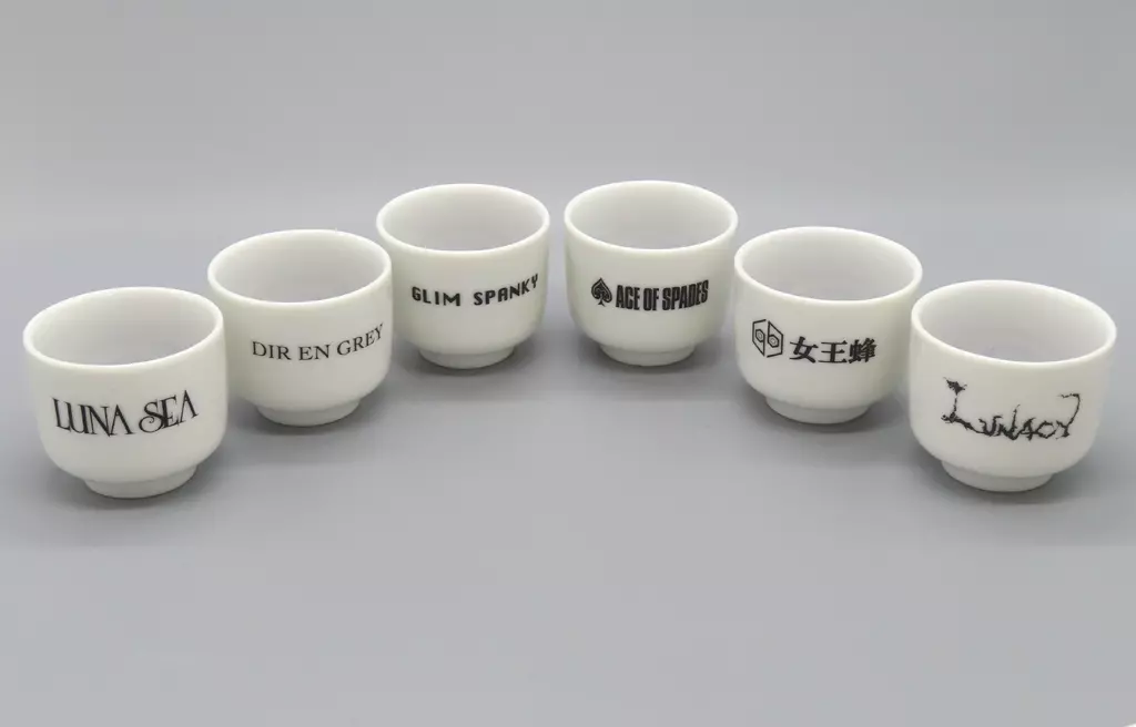 Un juego de copita para sake con el logo del artista que aparece en MOTHER STAGE del día 1 impreso en cada copita para sake.