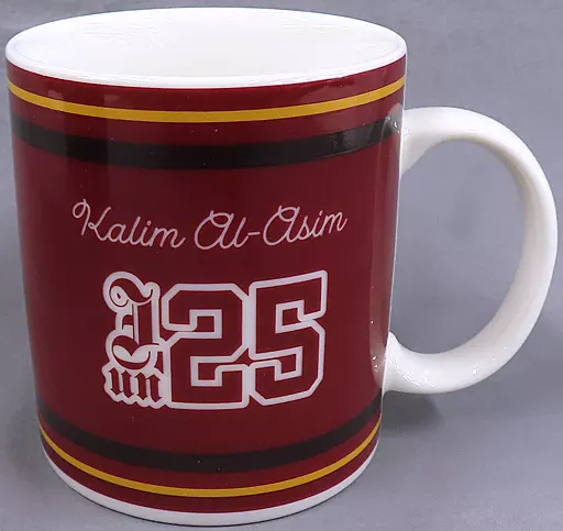 Una taza con un motivo de emblema en [Union Birthday].