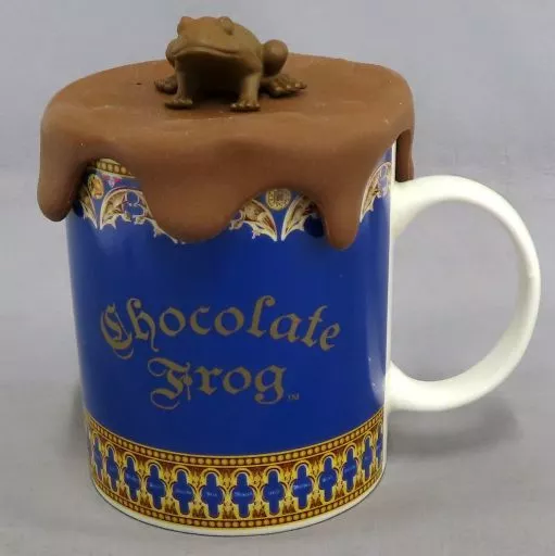 Una taza de rana de chocolate. El cuerpo de la taza está diseñado con las palabras "Chocolate Frog".