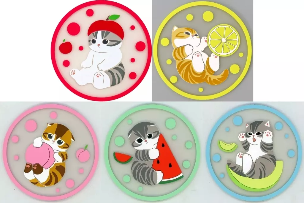 Explicación del artículo : "Flat Gashapon mofusand Clear Rubber Coaster" 5 tipos en total.