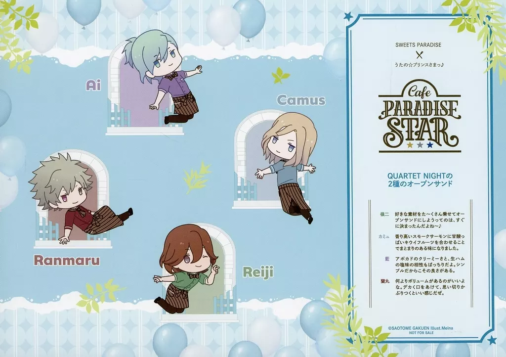 Explicación del artículo : "Uta no Prince-sama" Café PARADISE STAR Season 4 in Sweet Paradise "Original Paper Luncheon Mat", que es un regalo especial para pedir dulces.