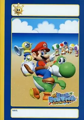 Esta es una nota B5 de "Super Mario Sunshine" con Character Tector "Mario", "Yoshi" y "Pinocho" impreso en ella.