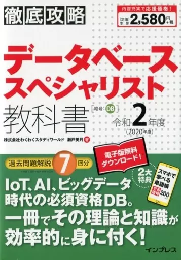 Nombre comercial en japonés: 単行本(実用) コンピュータ 徹底攻略 データベーススペシャリスト教科書 令和2年度 データベース