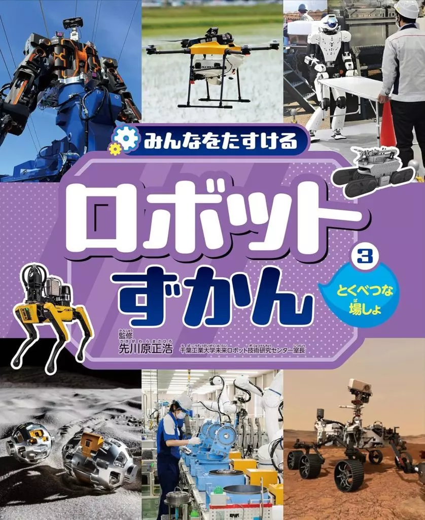 El volumen 3 explica los robots que trabajan en lugares peligrosos como el espacio y las obras de construcción, así como MOTOMAN para uso industrial.