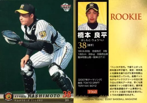 Nombre comercial en japonés: BBM/レギュラーカード/BBM2007 阪神タイガース T-060[レギュラーカード]:橋本良平