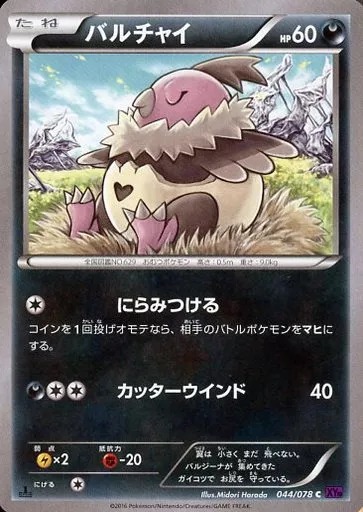 Nombre comercial en japonés: ポケモンカードゲーム/C/悪/XY BREAK 拡張パック めざめる超王 044/078[C]:バルチャイ