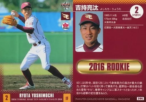 Nombre comercial en japonés: BBM/レギュラーカード/BBM2016 東北楽天ゴールデンイーグルス E44[レギュラーカード]:吉持亮汰