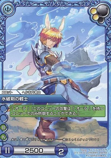 Nombre comercial en japonés: ラストクロニクル/C/ユニット/青/ブースターパック陽光編I 11-117C[C]:水破剣の戦士