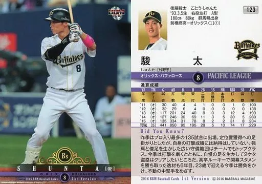BBM / Regular Card / Orix Buffaloes / BBM2016 Baseball Card primo versión 123 [tarjeta regular] : Sunta