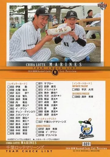 BBM / Regular card / Checklist / Chiba Lotte Marines / BBM2016 Baseball Card 1 st version 327 [tarjeta regular] : Chiba Lotte Marines